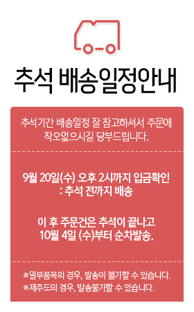 성수기(10월~2월)에는 물량증가로 순차배송 됩니다.