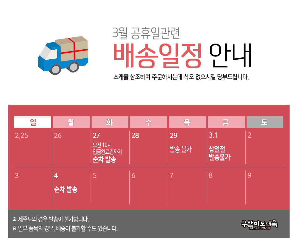 [배송안내] 2024년 삼일절 기간 배송일정 안내드립니다.