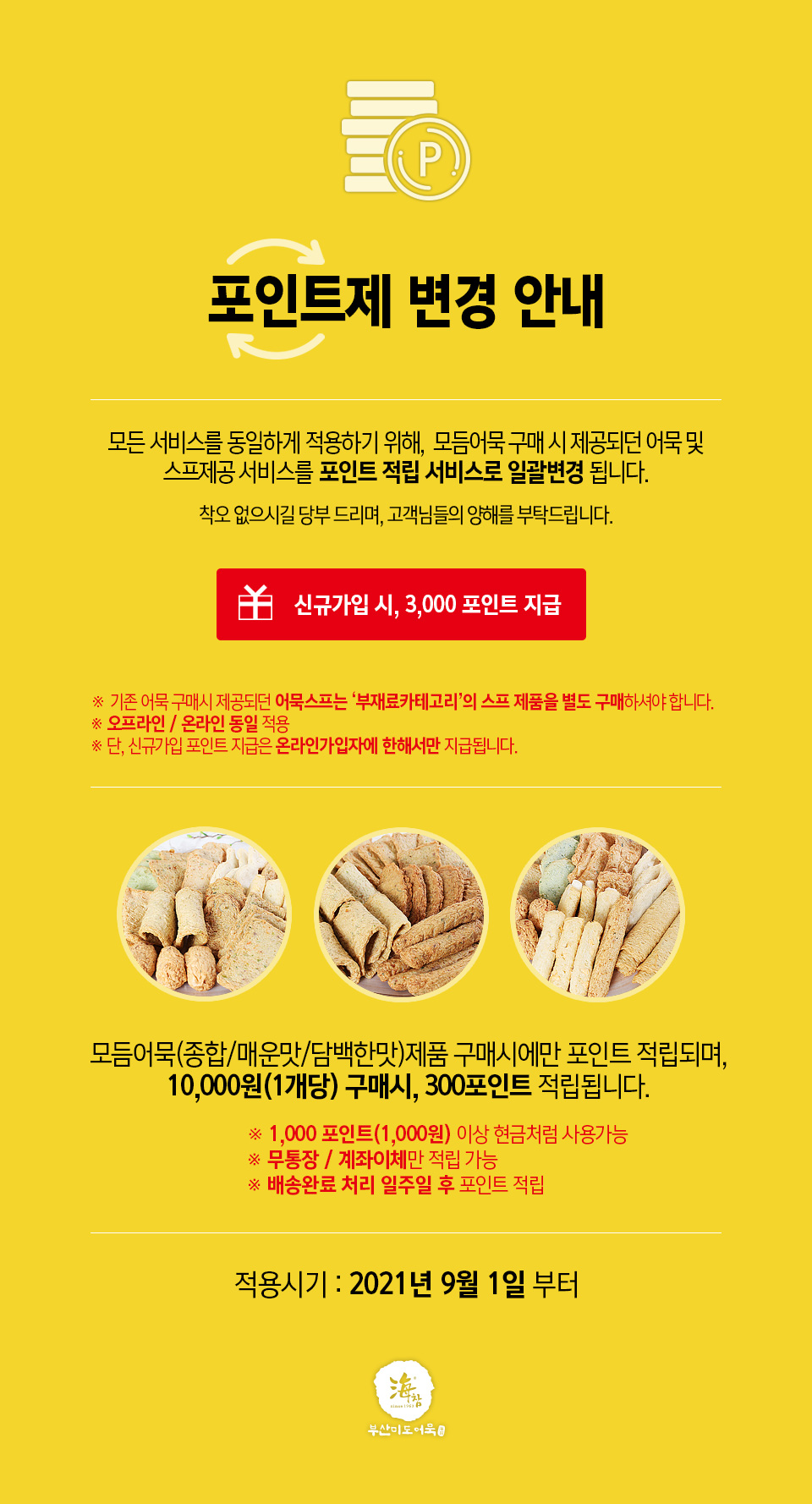 [변경안내] 포인트제(적립금) 서비스가 시작됩니다.